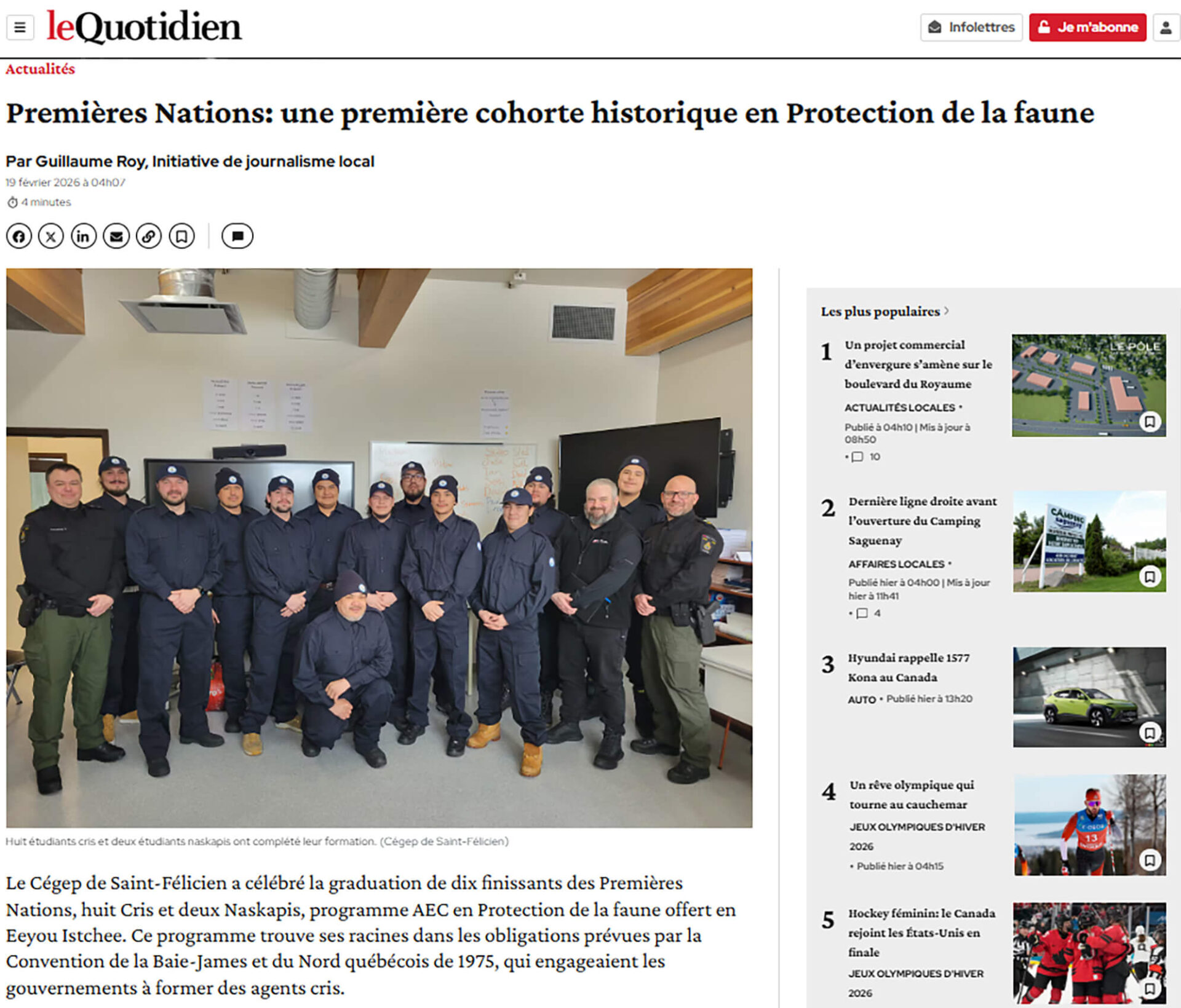 Nous vous invitons à lire le reportage du journaliste Guillaume Roy du journal Le Quotidien paru le 19 février 2026.